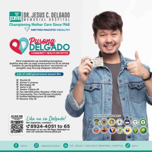 2. Magpunta sa Dr. Jesus C. Delgado Memorial Hospital (7 Kamuning Road, Quezon City) at ipakita ang isa sa mga sumusunod na valid government-issued ID na nagsasaad na ang iyong residential address sa aming Cashier at mga doctors’ secretaries upang ma-avail ang Pusong Delgado discounts.